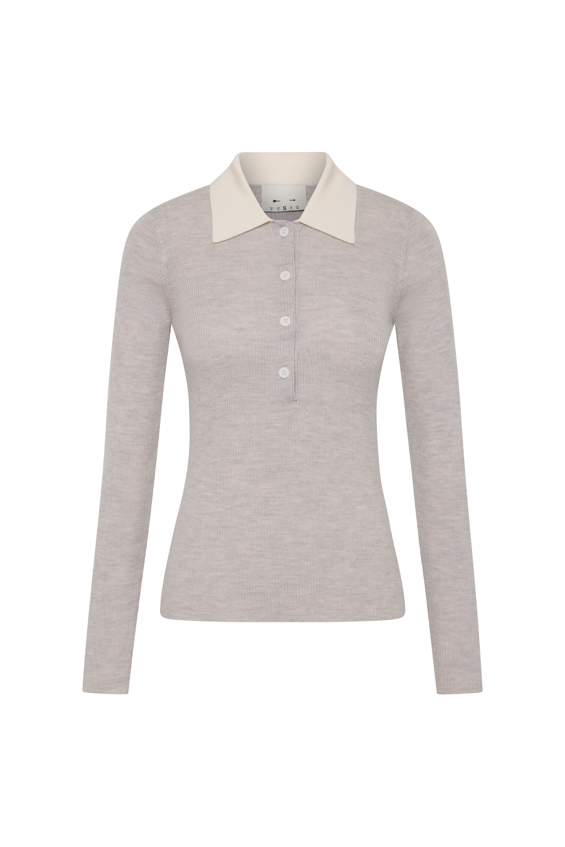 - 100% merino wool knit in grey marle with contrast cream collar