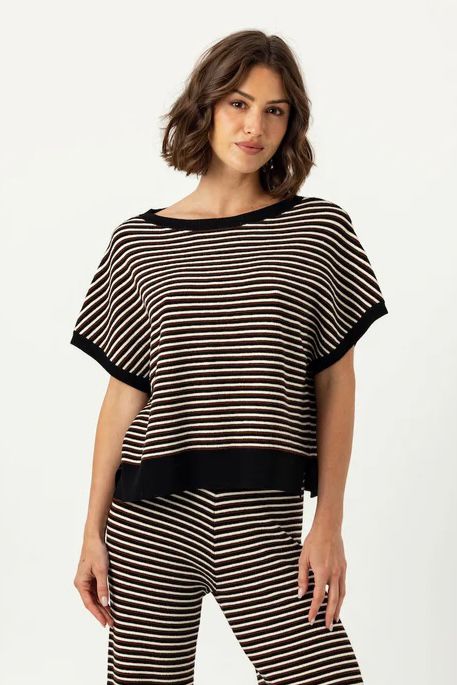 - Made from a soft cashmere blend with a refined monochromatic stripe