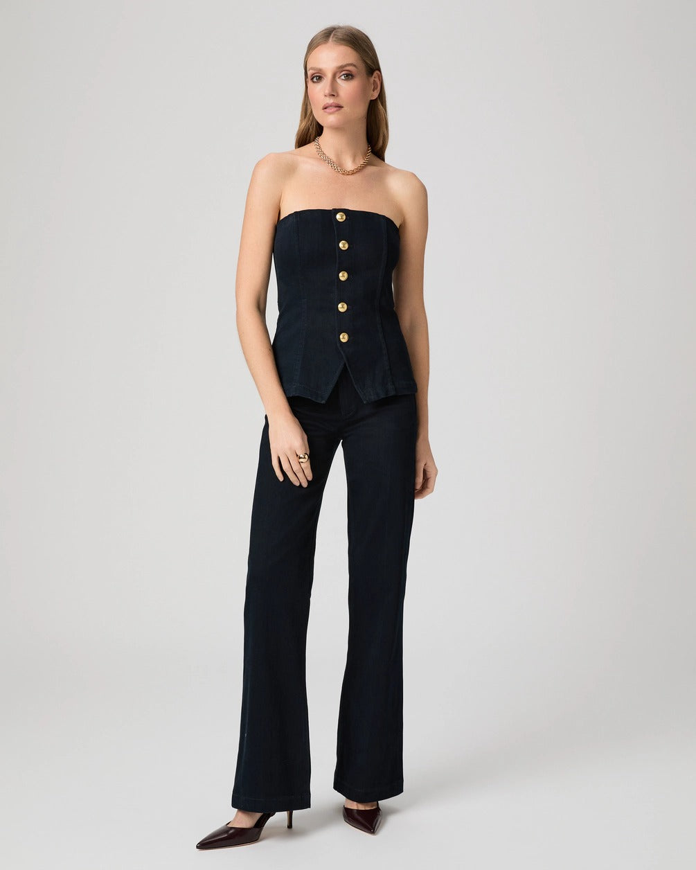 This 90s-inspired sleek wide leg is designed with a high-rise and a flattering bow leg silhouette. Cut from our TRANSCEND VINTAGE denim in a rich navy blue wash with mini front welt pockets, this pair combines the signature comfort of Transcend with rich denim character for a lived-in look.